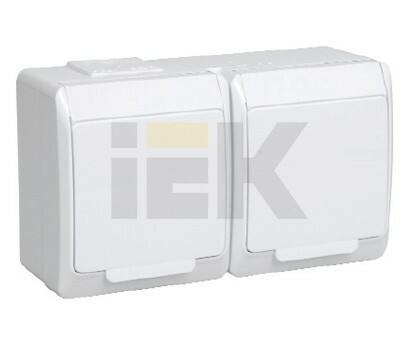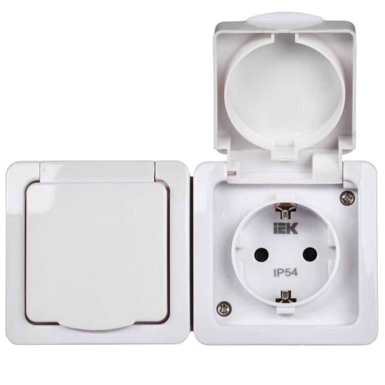 Розетка двойная 2х2P+E с белой крышкой накладная белый IP54 IEK Гермес PLUS