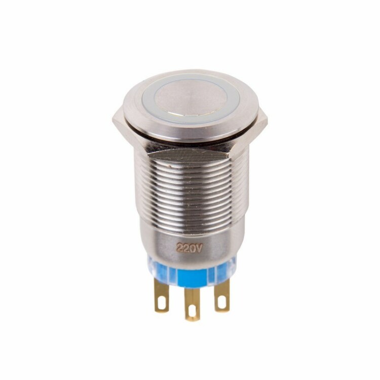 Кнопка антивандальная Ø19 12В Б/Фикс (5с) (ON)-OFF/(OFF)-ON белая (A19-C1) REXANT