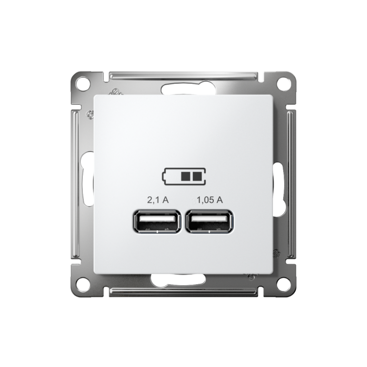 Розетка USB 2 порта A + A 5В/2,1А 2х5В/1,05А белый AtlasDesign