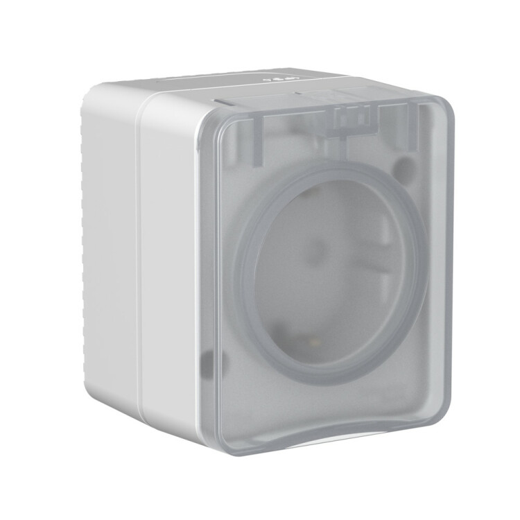 Розетка 2P+E со шторками накладная серый AtlasDesign Profi54