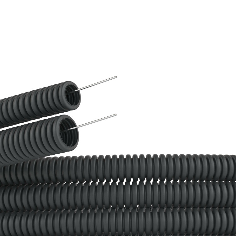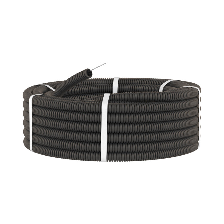 Труба ПВХ гибкая гофрированная д.16 мм, лёгкая, с протяжкой, цвет чёрный, (Бухта 100м)
