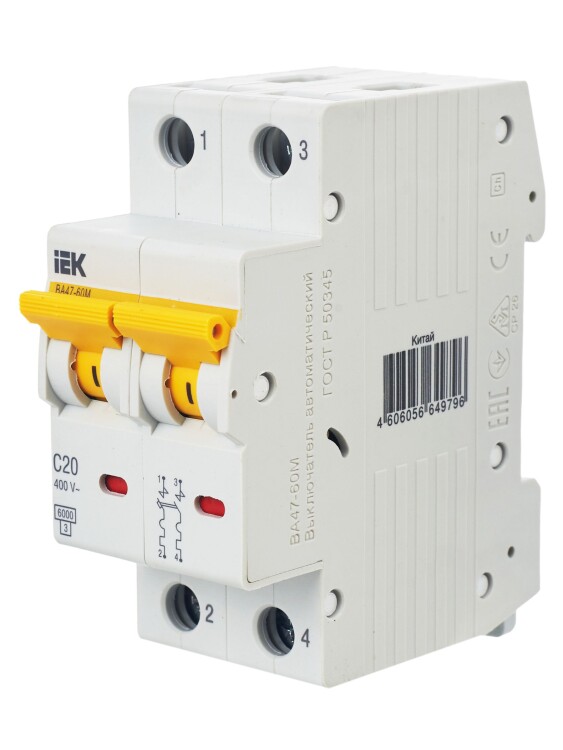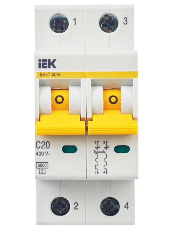 Выкл. авт. ВА47-60M 2Р 20А 6кА С IEK