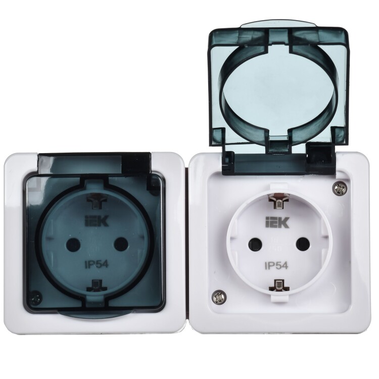 Розетка двойная 2х2P+E с прозрачной крышкой накладная белый IP54 IEK Гермес PLUS