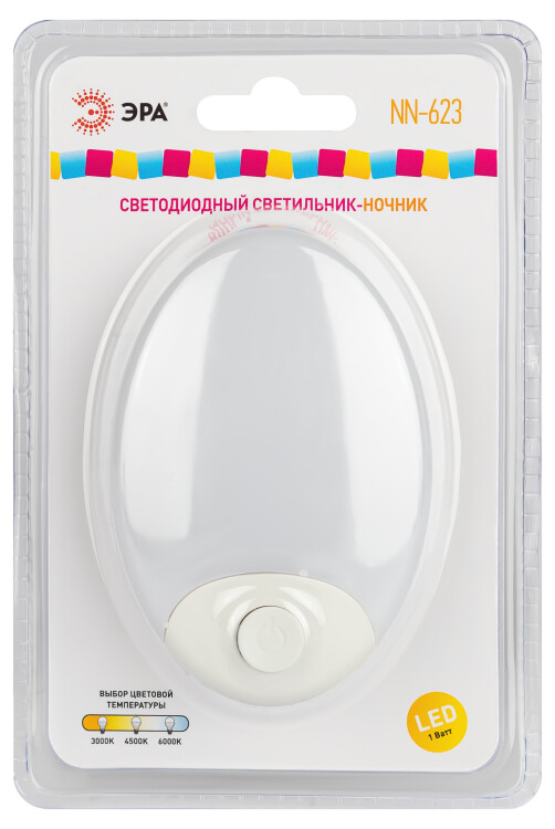 Ночник - светильник светодиодный ЭРА NN-623-SW-W в розетку с выключателем белый