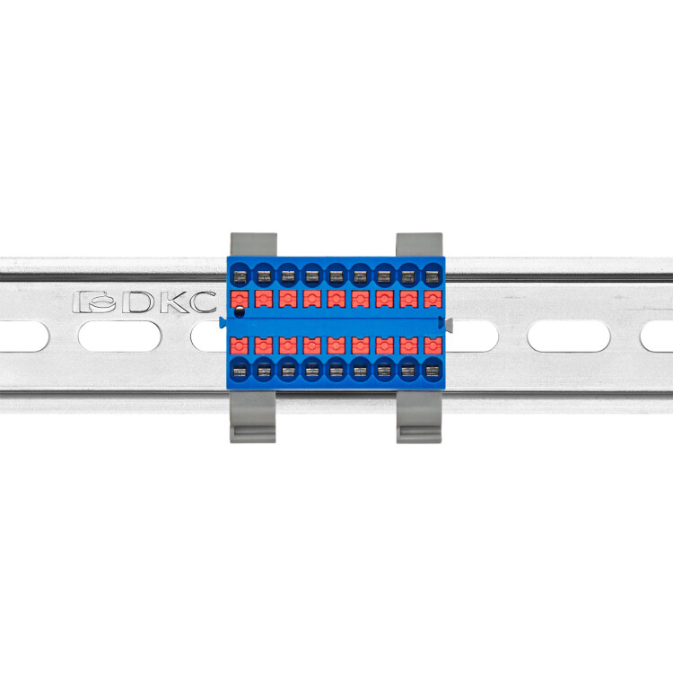 Блок распределительный с гориз. адаптером на рейку шириной 35мм, зажим push-in, 18 точек подключения 2,5 кв.мм, синий