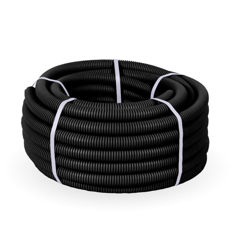 Труба ПНД гибкая легкая с протяжкой д.25 черная стойкая к ультрафиолету (HF) (Бухта 50м)