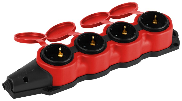 Колодка ЭРА KX-4e-RED-IP44 каучуковая с заземлением 4 розетки 16A IP44 красная