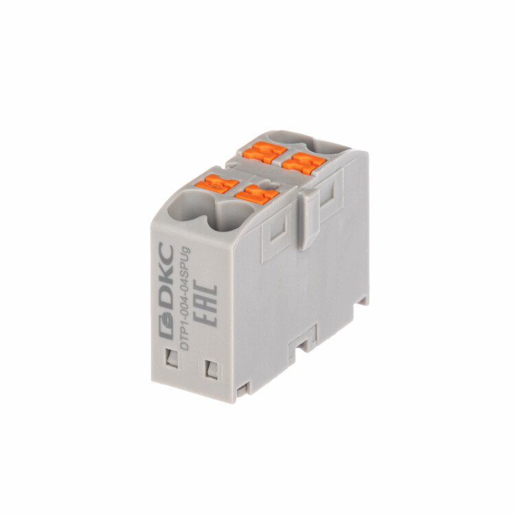 Блок распределительный, зажим push-in, 4 точки подключения 2,5 кв.мм, серый