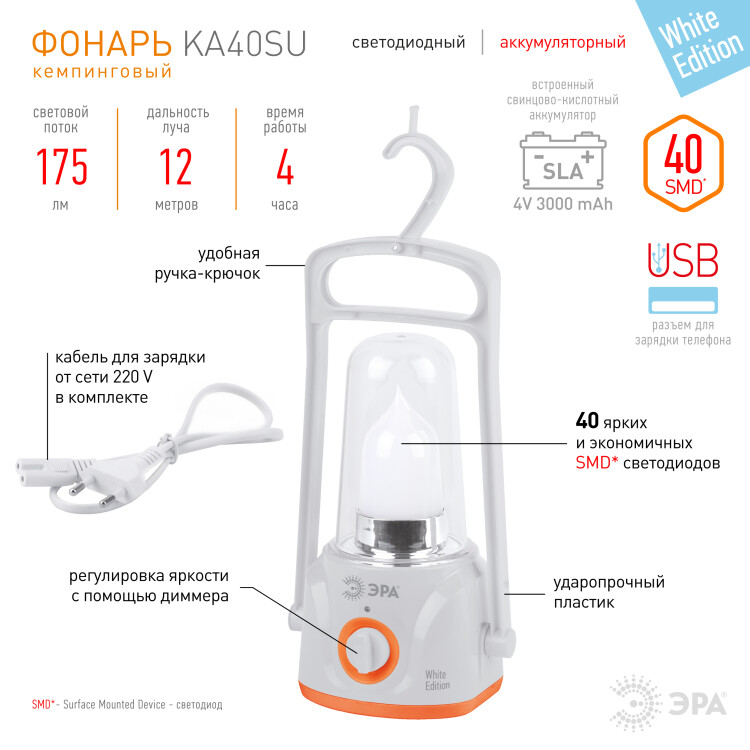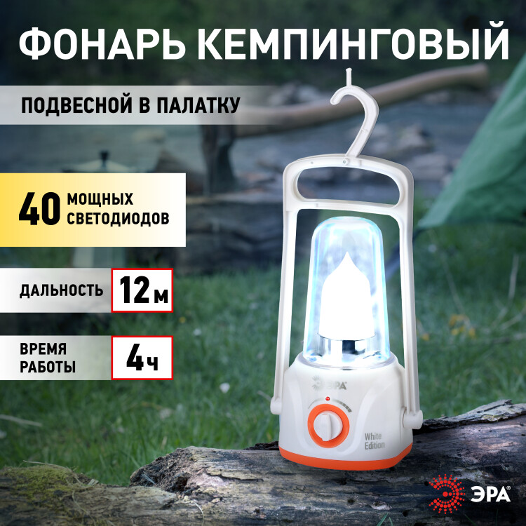 Фонарь кемпинговый светодиодный ЭРА KA40SU аккумуляторный с диммером и крючком яркий светильник белый