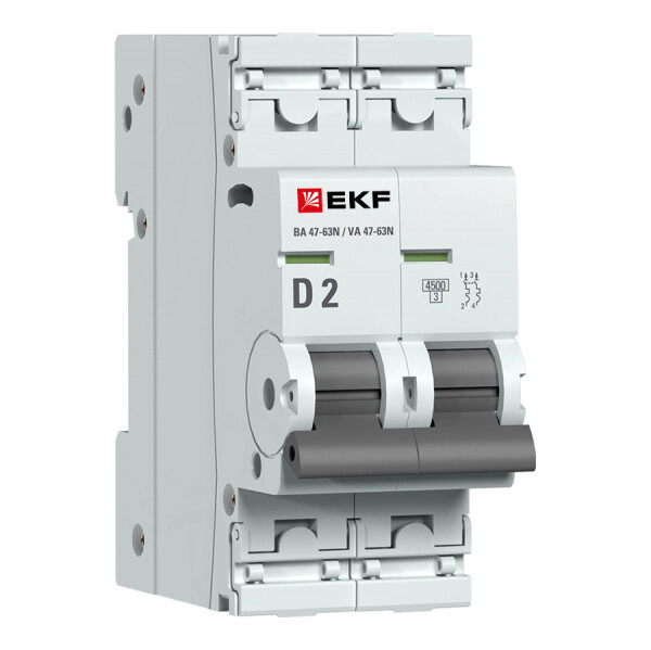 Автоматический выключатель ВА 47-63N 2P 2А (D) 4,5 кА PROXIMA EKF