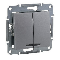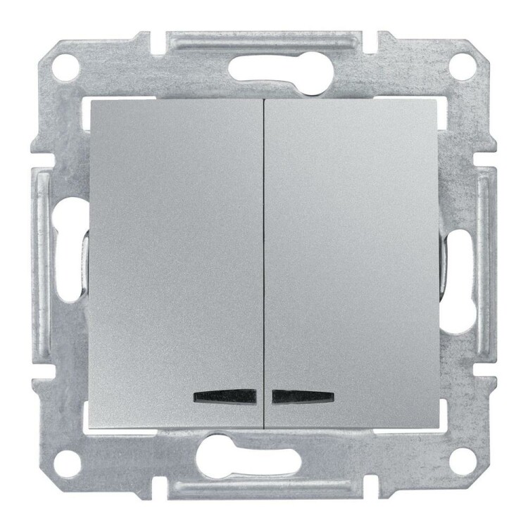 Выключатель 2 клавишный с подсветкой 10А алюминий Sedna