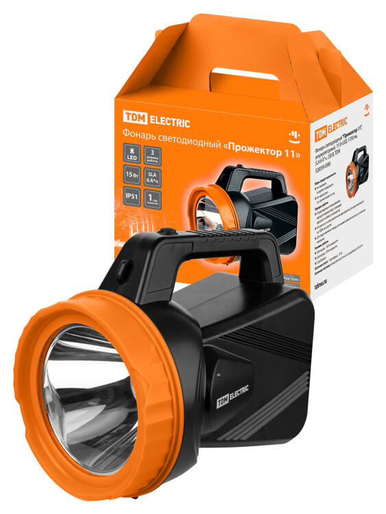 Фонарь светодиод. "Прожектор 11", аккумуляторный, 15 Вт LED, 1150 лм, SLA 6 А*ч, 230 В, TDM