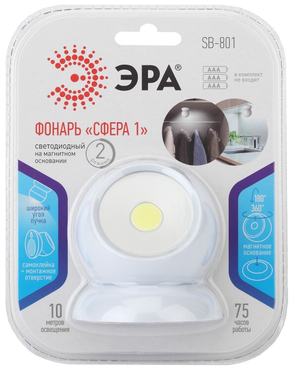 Светодиодный фонарь подсветка ЭРА Пушлайт SB-801 Сфера-1 на магнитном основании