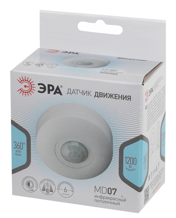 Датчик движения ЭРА MD 07 потолочный 1200Вт, 6м (50/1400)