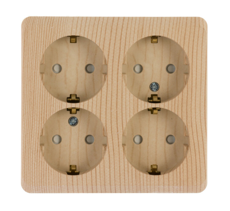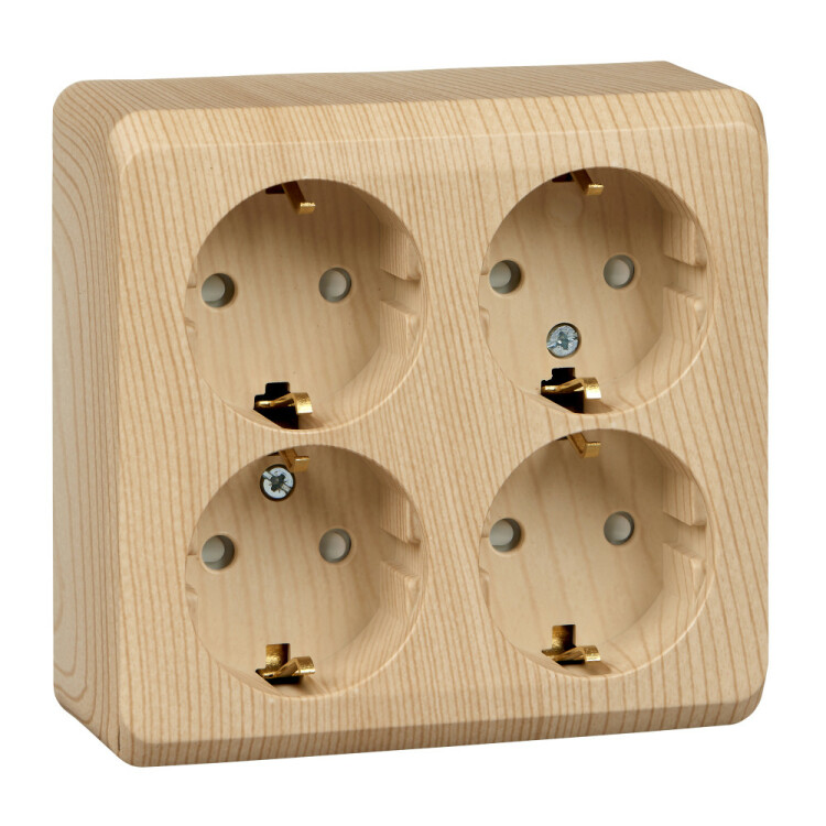 Розетка четырехместная 2P+E со шторками сосна Этюд