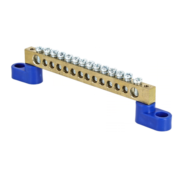 Шина N "ноль" 6х9мм 14 отв. синий на двух угл.изоляторах