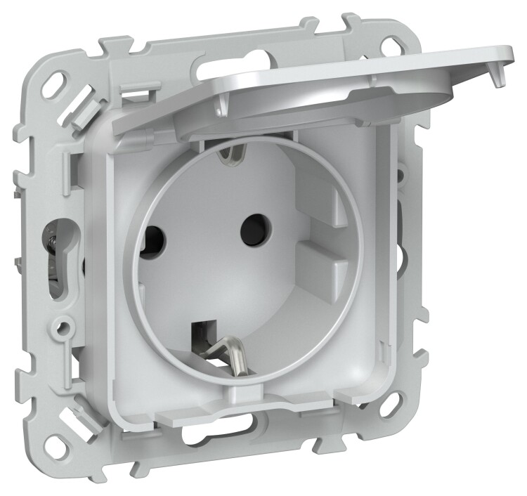 Розетка 2P+E IP44 с крышкой 16А безвинтовое креплениеРСшкр11-1-44-ФлЖ жемчуг FLITE