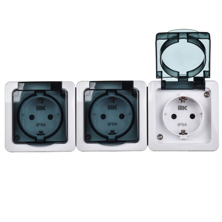 Розетка тройная 3х2P+E с прозрачной крышкой накладная белый IP54 IEK Гермес PLUS