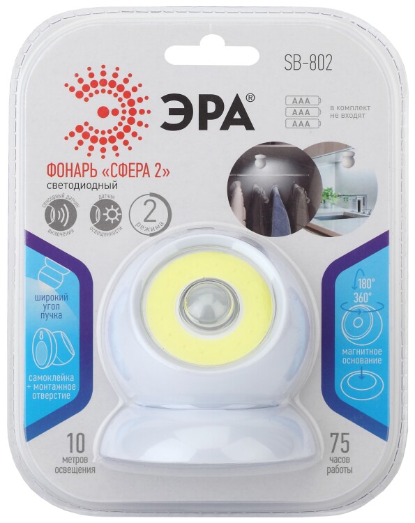 Светодиодный фонарь подсветка ЭРА Пушлайт SB-802 Сфера-2 на магнитном основании с датчиками движения и освещенности