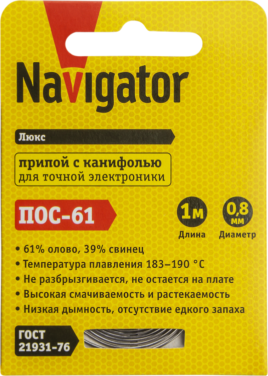 Припой Navigator 93 088 NEM-Pos03-61K-0.8-S1 (ПОС-61, спираль, 0.8 мм, 1 м)
