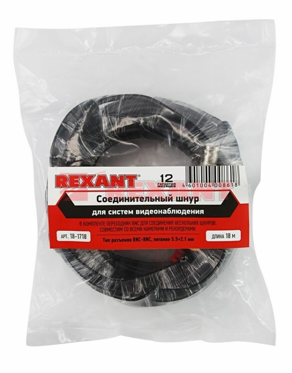 Кабель соединительный для систем видеонаблюдения BNC + DC питание, длина 18 метров REXANT