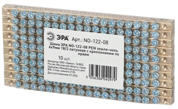 Шина ЭРА NO-122-08 PEN земля-ноль 6х9мм 18/2 латунная с креплениями по краям