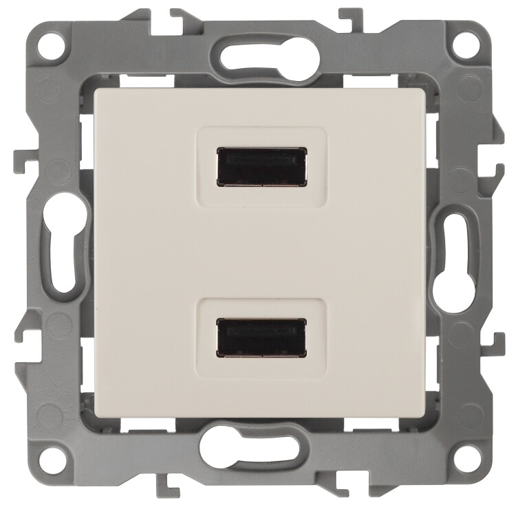 12-4110-02 ЭРА Устройство зарядное USB, 230В/5В-2100мА, IP20, Эра12, слоновая кость (6/60/1920)