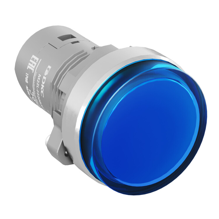 Сигнальный индикатор со встроенным диодом 220В, синий, алюминий, зажим Push-In