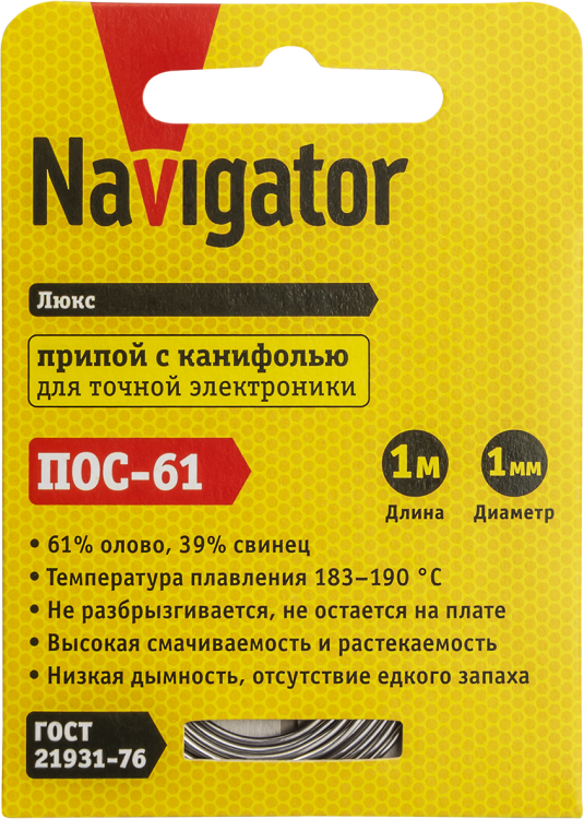 Припой Navigator 93 089 NEM-Pos03-61K-1-S1 (ПОС-61, спираль, 1 мм, 1 м)