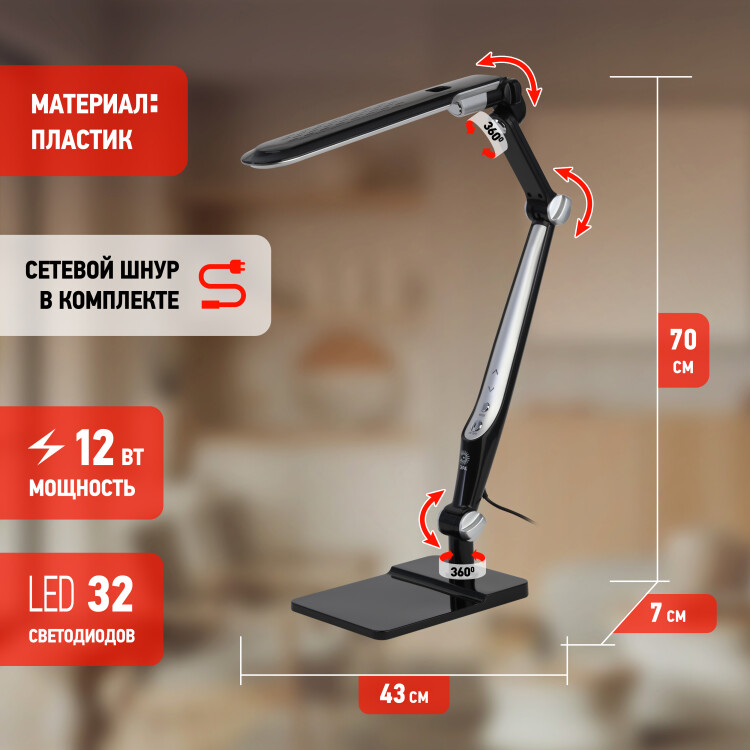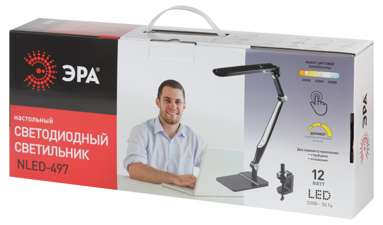 Светильник настольный NLED-497-12W-BK 12Вт 3000/4500/6000K Основание/струбцина чёрный