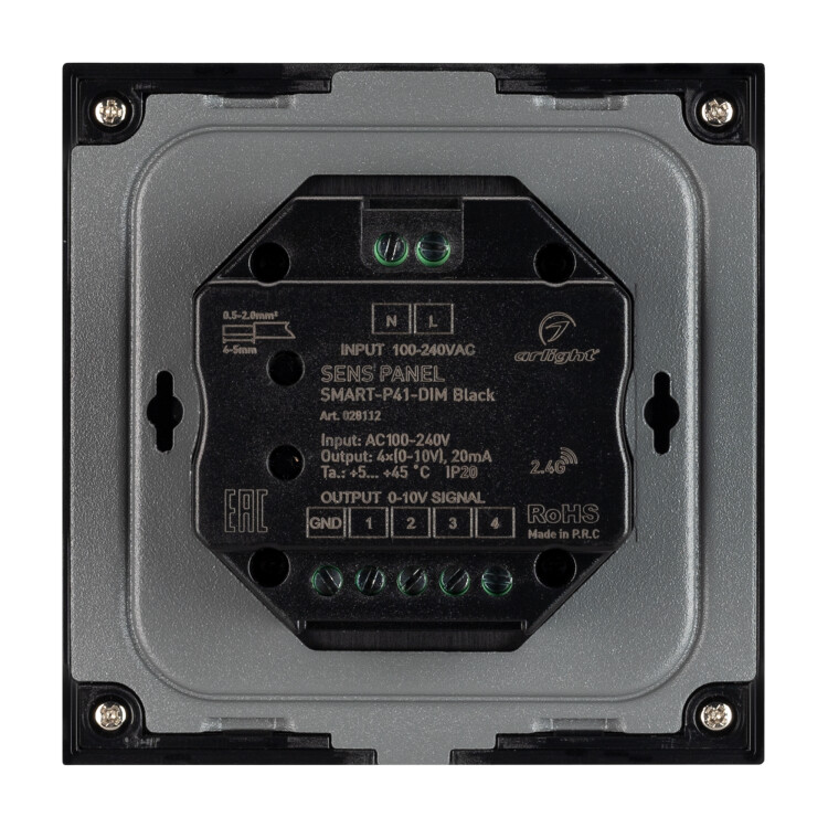 Панель SMART-P34-DIM-IN Black (230V, 0-10V, Sens, 2.4G) (Arlight, IP20 Пластик, 5 лет)