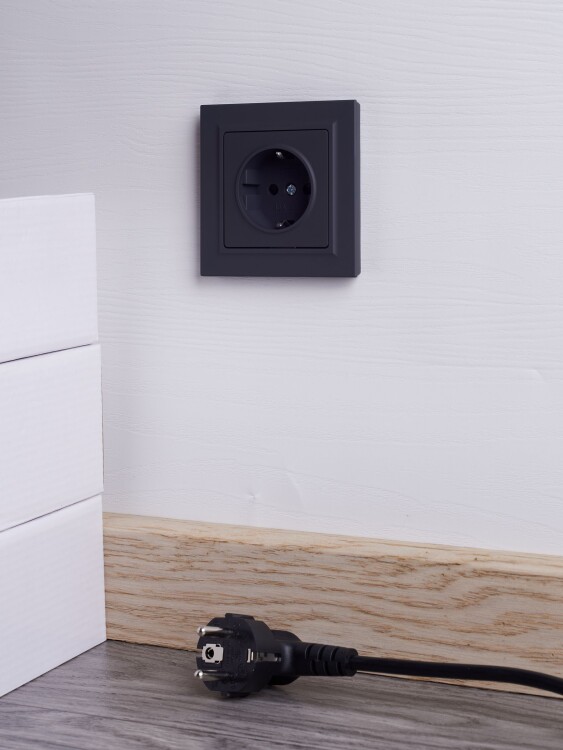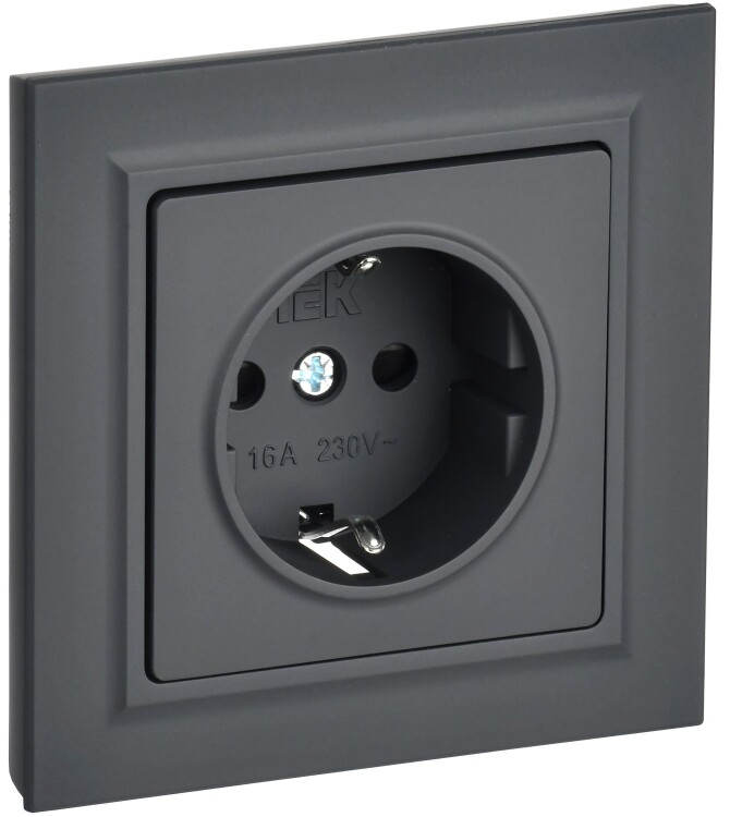 Розетка 2P+E с защитными шторками 16А в сборе РСР14-1-0-БрГ графит BRITE