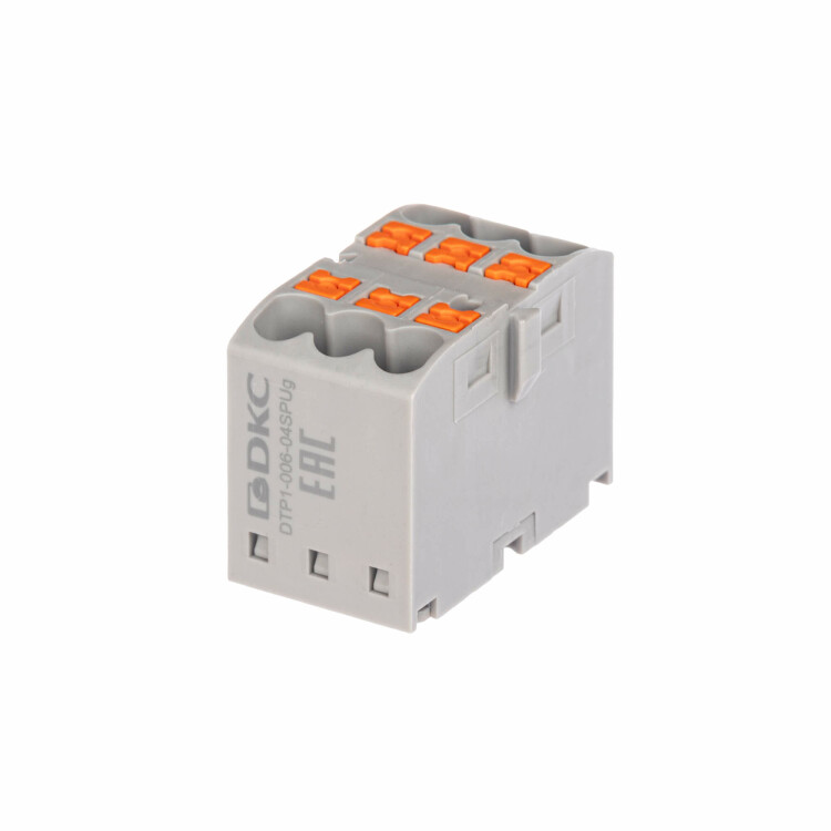 Блок распределительный, зажим push-in, 6 точек подключения 2,5 кв.мм, серый