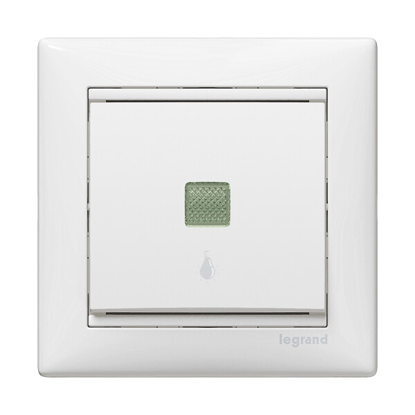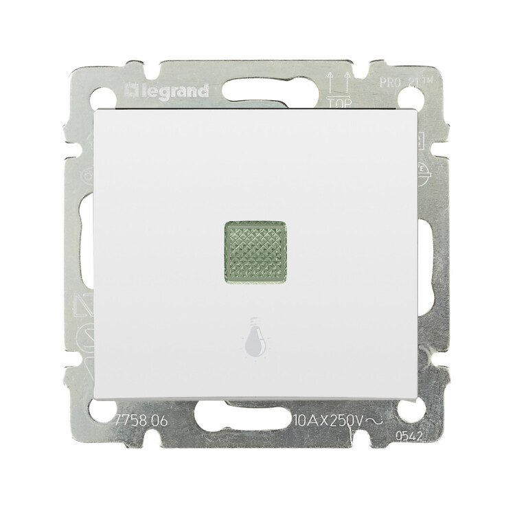 Выключатель кнопочный с подсветкой с символом "лампа" белый Valena