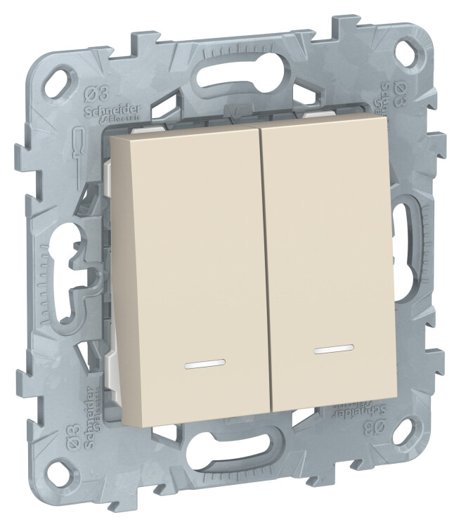 Выключатель 2 клавишный с подсветкой 10А бежевый Unica New