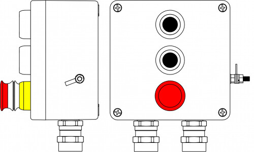 Взрывозащищенный пост управления из полиэстера CPE-Р-05-(2xP1B(11)-1xP3E (11))-2xAASBMB(C)1Ex d e IIC T6 Gb / Ex tb IIIC T80°C Db IP66/КЗ/ШЗ