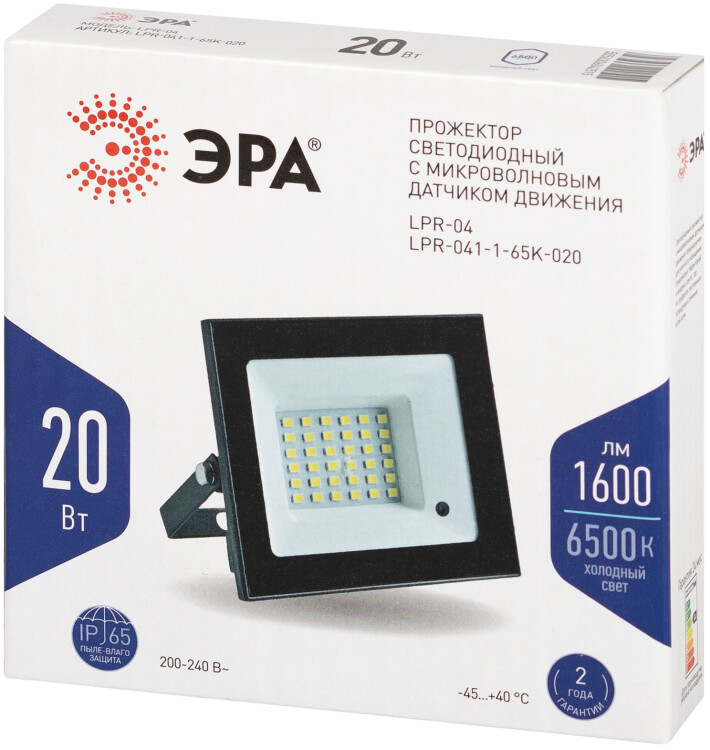 Прожектор светодиодный уличный ЭРА LPR-041-1-65K-020 20Вт 6500К 1400Лм IP65 датчик движения нерегулируемый