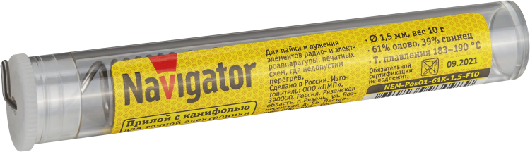Припой Navigator 93 098 NEM-Pos01-61K-1.5-F10 (ПОС-61, колба, 1.5 мм, 10 гр)
