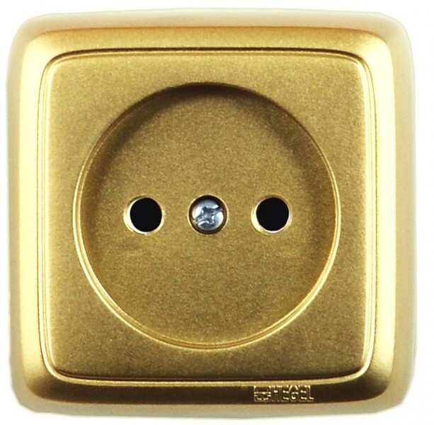 РА16-104-07 Розетка открытой установки, одноместная, со шторкой, с изолирующей пластиной, цвет золото