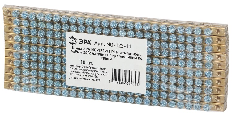 Шина ЭРА NO-122-11 PEN земля-ноль 6х9мм 24/2 латунная с креплениями по краям