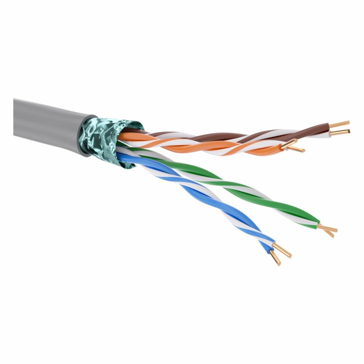 Кабель витая пара кат. 5E экранированный F/UTP, 4 пары, нг(А)-HF, цвет внешней оболочки серый, катуш