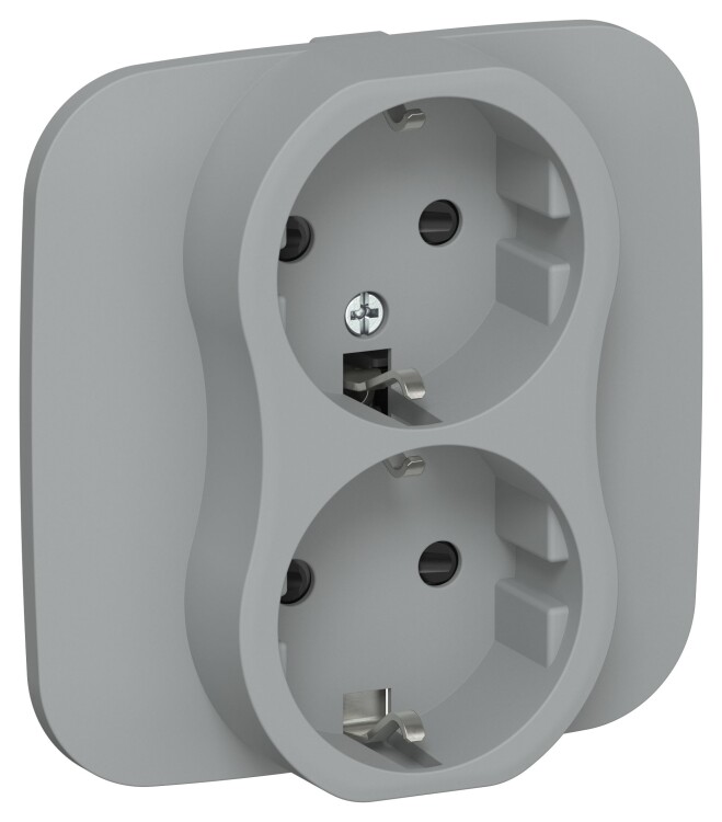 Розетка 2х2P+E со шторками в сборе Artistic безвинтовое крепление 16А РСш12-1-А-ФлС серый FLITE