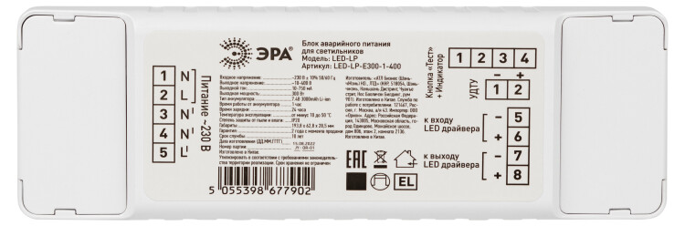 БАП для светильников ЭРА LED-LP-E300-1-400 универсальный до 300Вт 1час IP20