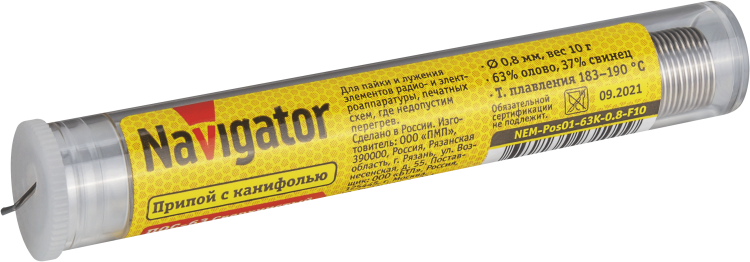 Припой Navigator 93 100 NEM-Pos01-63K-0.8-F10 (ПОС-63, колба, 0.8 мм, 10 гр)