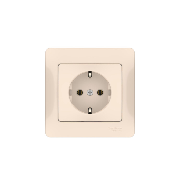 GLOSSA РОЗЕТКА с заземлением без шторок, 16А, в сборе, быстрозажим. клем., БЕЖЕВЫЙ