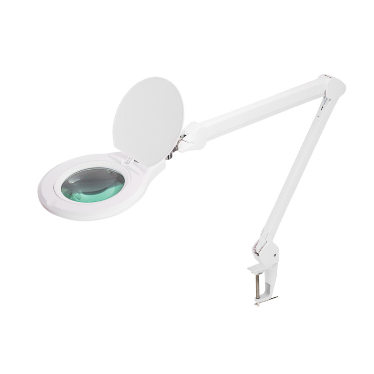 Лупа на струбцине круглая 5D с подсветкой 72 SMD, сенсорный регулятор яркости, ø152мм, белая REXANT