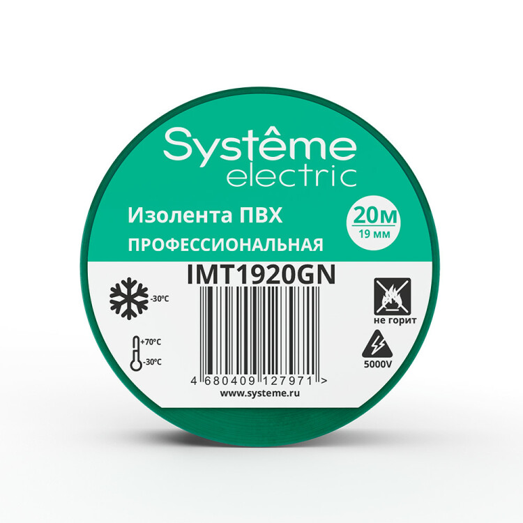 Изолента ПВХ зеленая 19 мм x 20 м толщина-0,13мм