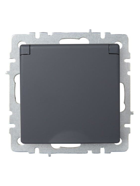 Розетка 2P+E с защитными шторками и крышкой 16А IP20 РСбш10-3-БрГ графит BRITE