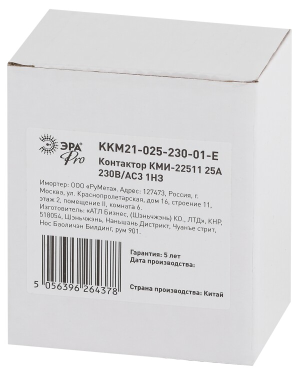 Контактор ЭРА PRO KKM21-025-230-01-E КМИ-22511 25А 230В/АС3 1НЗ