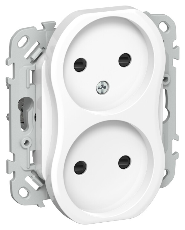 Розетка 2х2P со шторками безвинтовое крепление 10А РСш02-1-ФлБ белый FLITE